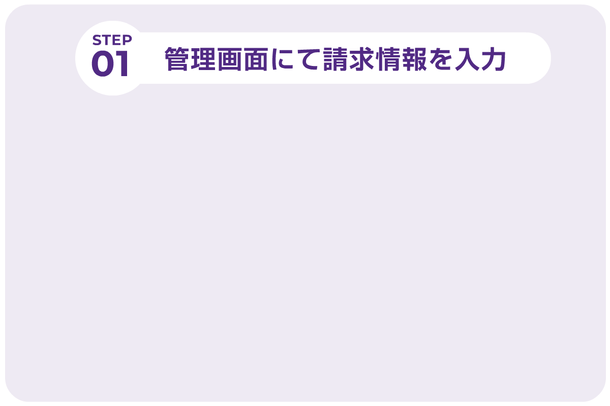 お客様ごとに請求ページを作成し、メールやSMSで案内が可能です。お客様はスマホやPCから支払内容を確認し、決済を行います。請求書、領収書の発行も可能です。